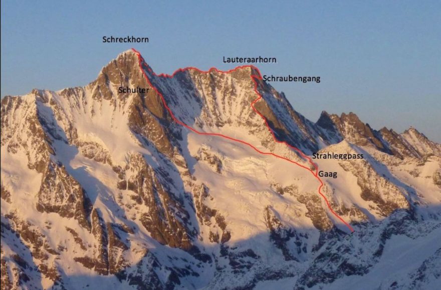 Náročný traverz čtyřtisícovek Schreckhorn a Lauteraarhorn ve Švýcarsku