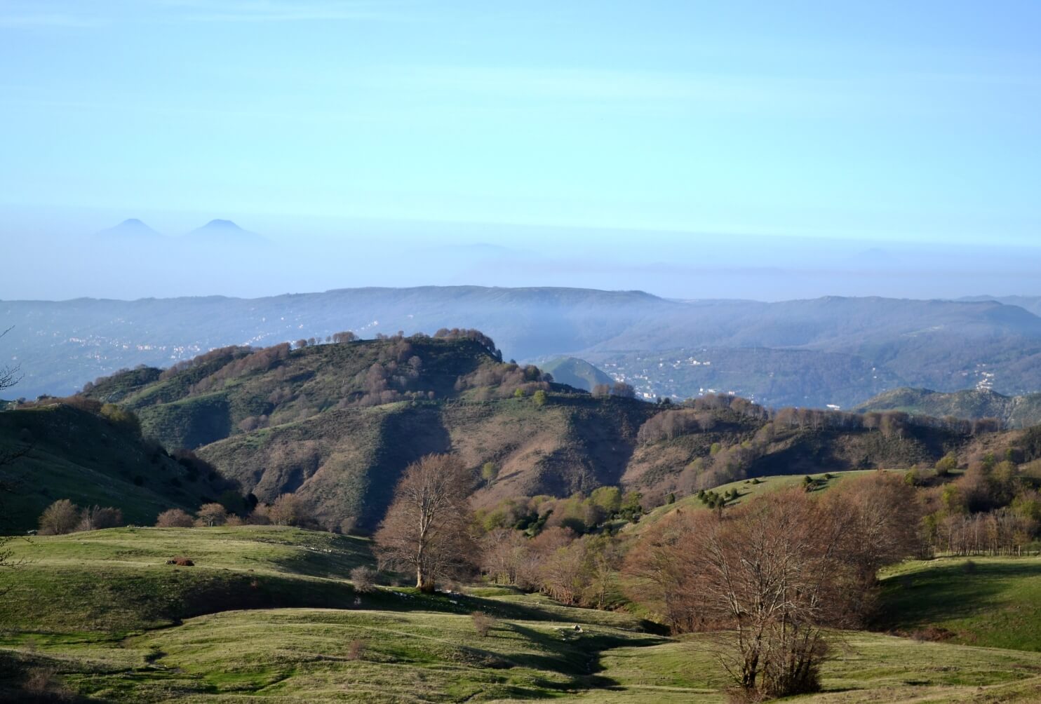 Na obzoru vystupují vulkanické kužely Liparských ostrovů, Nebrodi, Sicílie, Itálie