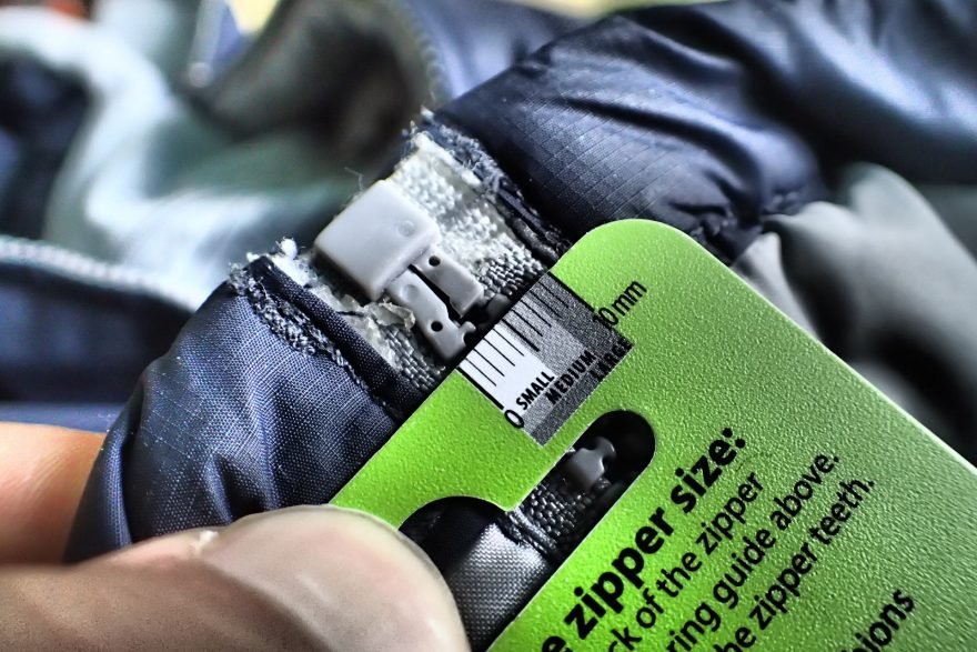 Výběr vhodné velikosti zipového jezdce podle měřítka.