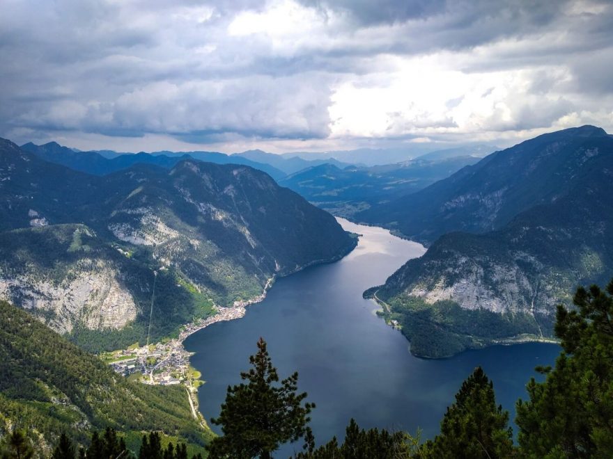 Jedna z nejnáročnějších rakouských ferrat Seewand klettersteig nabízí dechberoucí výhled na Hallstattské jezero. Solná komora, Rakousko, Alpy