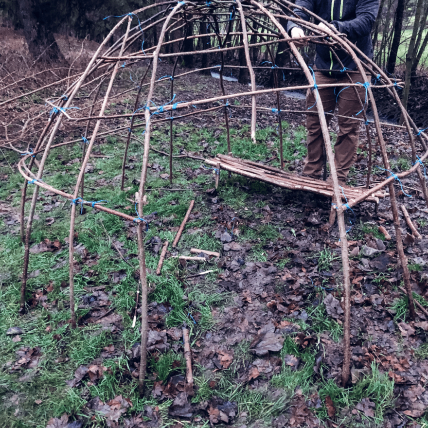 Indiánská sauna - z proutí se nejprve postaví konstrukce ve tvaru iglú.