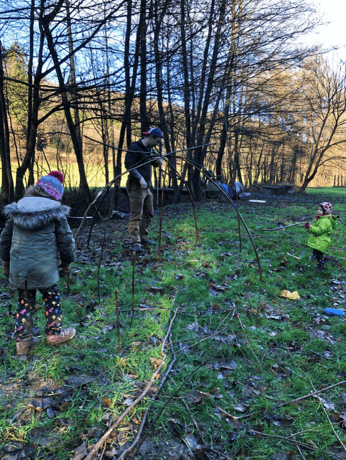 Indiánská sauna - z proutí se nejprve postaví konstrukce ve tvaru iglú.