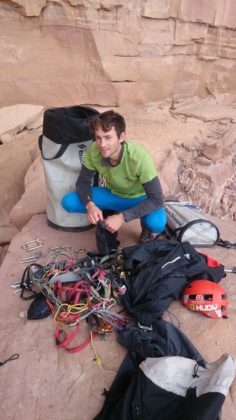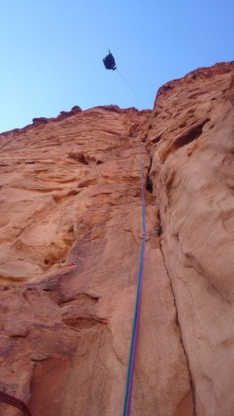 Při prvním slanění přes převis mi to trochu uklouzlo a už byla ruka mezi lanem a skálou