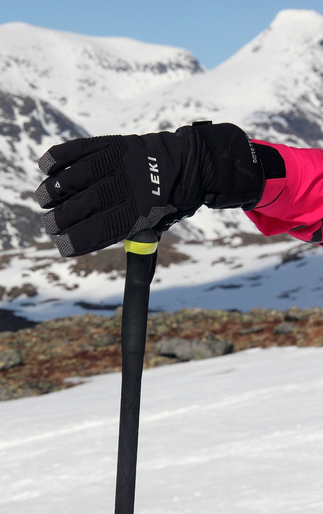 Dlaňová část rukavic Leki s okem Trigger Loop vedle palce