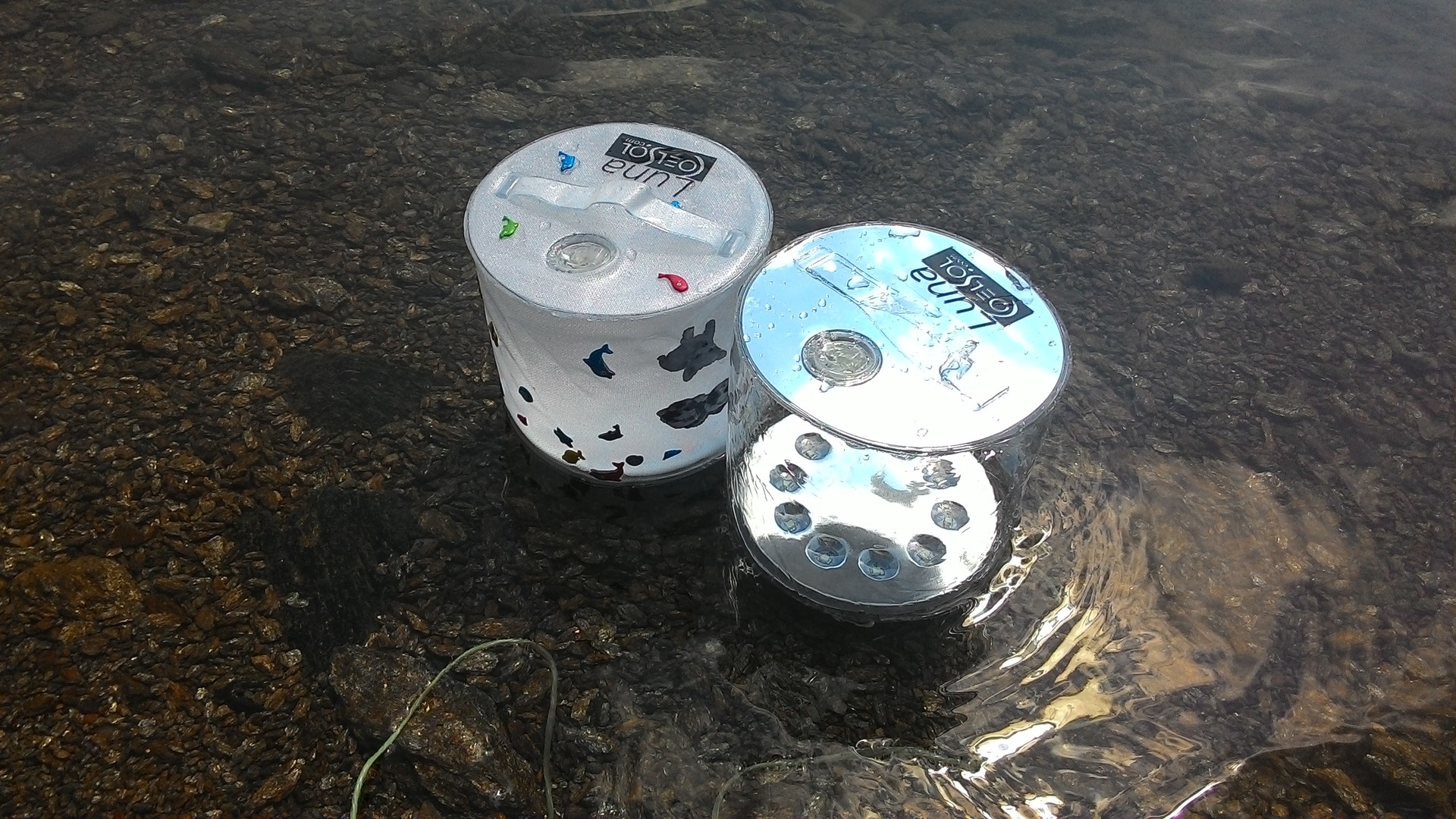 Plovoucí voděodolná solární lampička Luna i s dětskými polepkami.