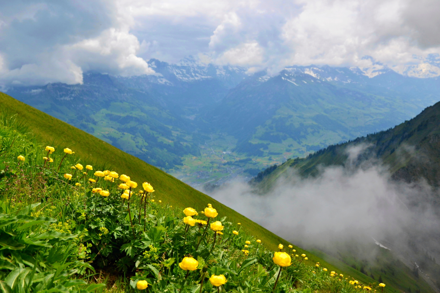 Rozkvetlé horské louky, Niesen, Švýcarsko.