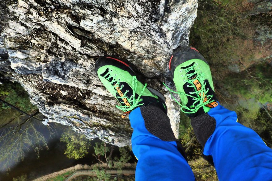 Pevná bota zpříjemňuje stání na skalních stupech.