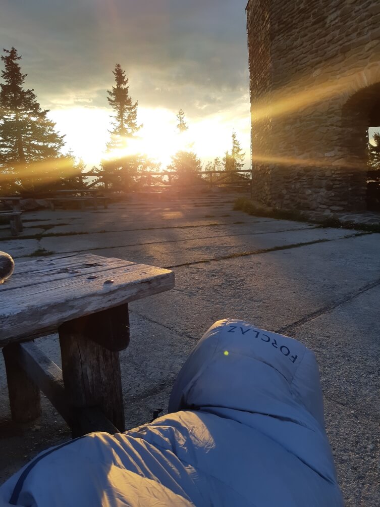 Přístřešek z plachty podepřený holemi, případně tarp, šetří váhu i místo v batohu.