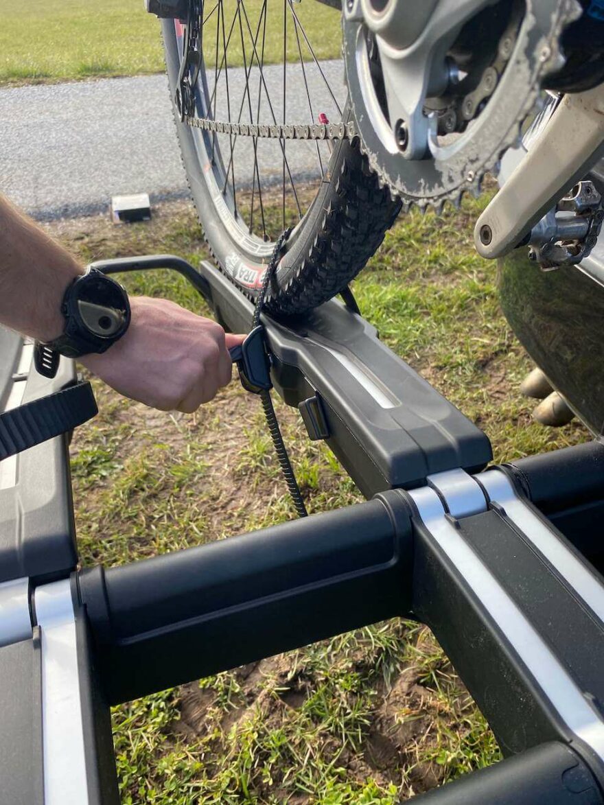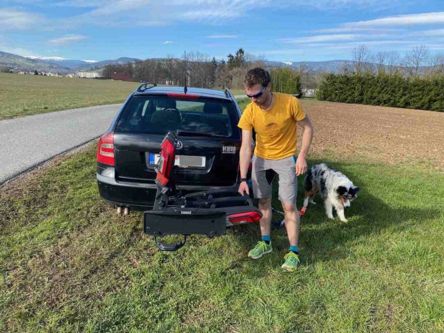 Nosič Thule Epos připraven k naložení kol.