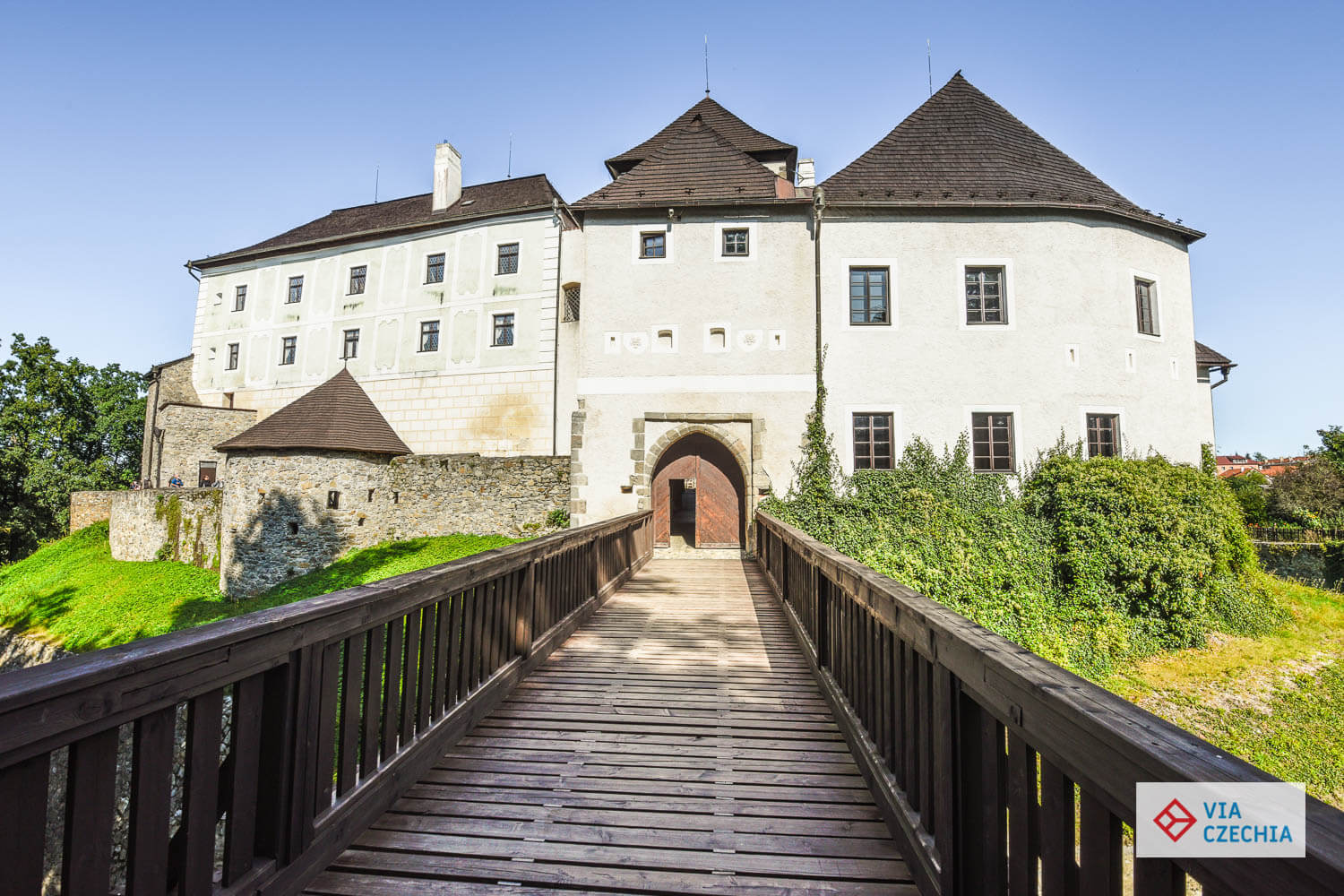 Gotická stavba hradu v Nových Hradech se tyčí nad údolím Stropnice