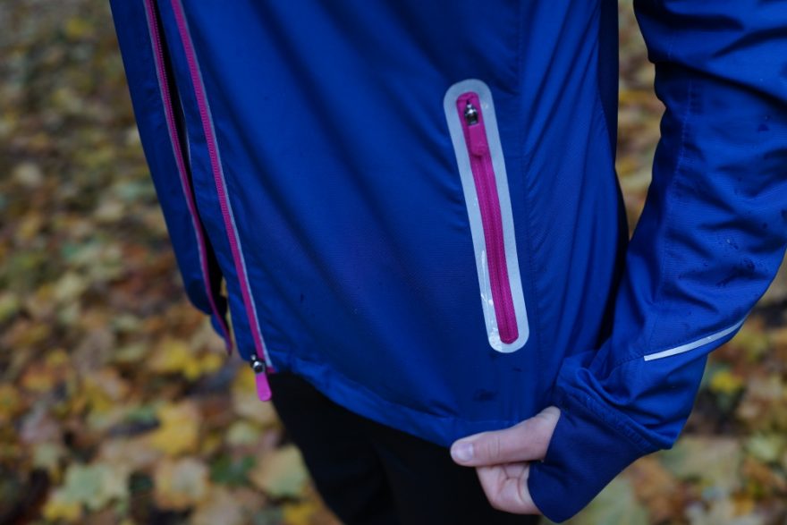 Kapsy mají kolem reflexní pruh, na konci rukávů je otvor pro palec