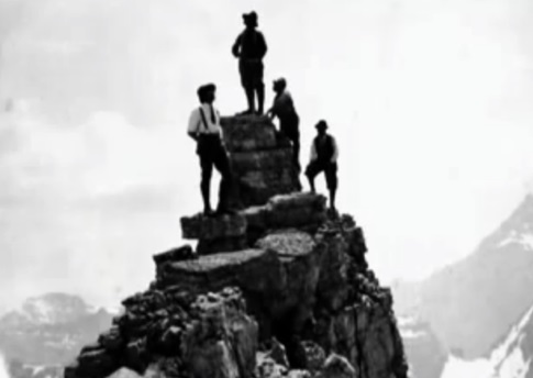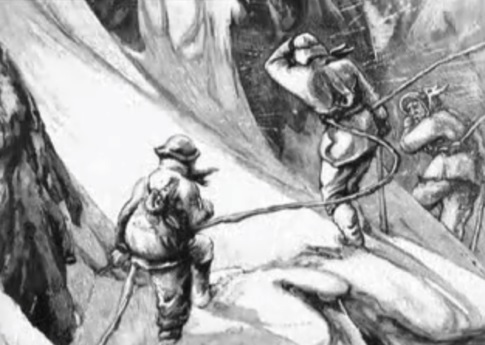 Elegání s konopnými lany a turistickými holemi – typický britský horolezec v polovině 19. století
