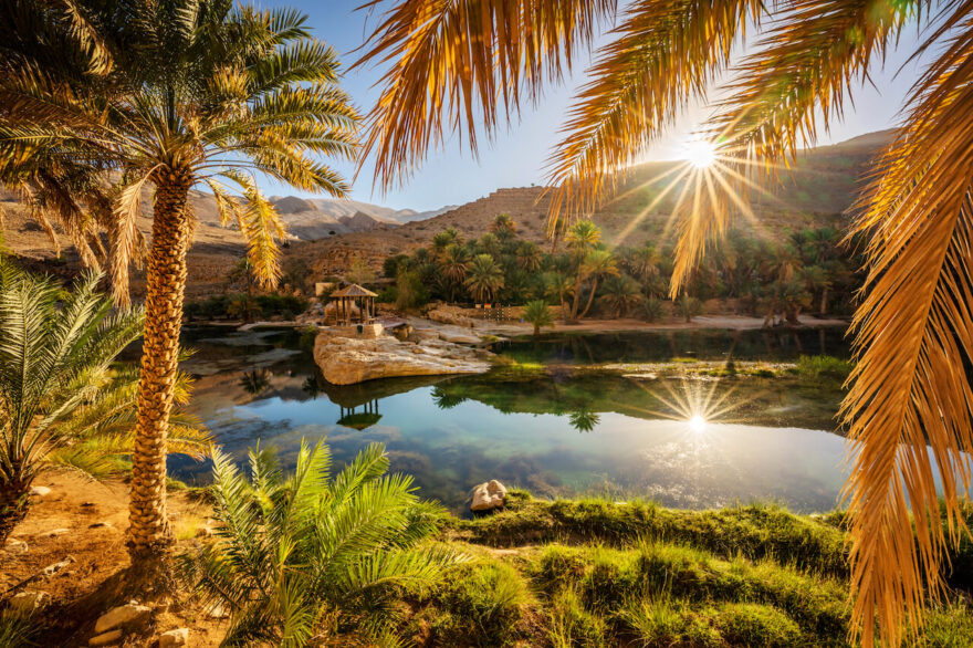 Exotický sultanát Omán ztělesňuje snové představy o divoké pouštní krajině a pohádkových oázách.
