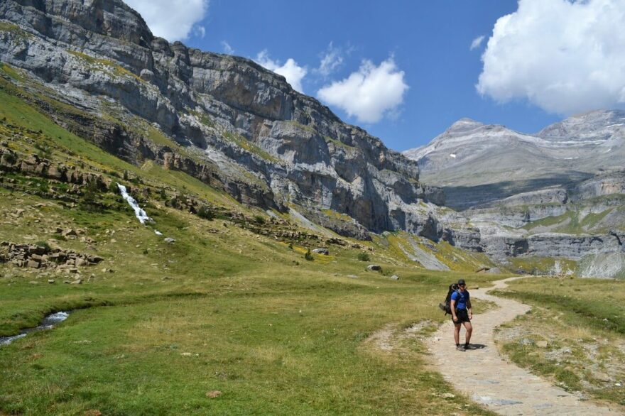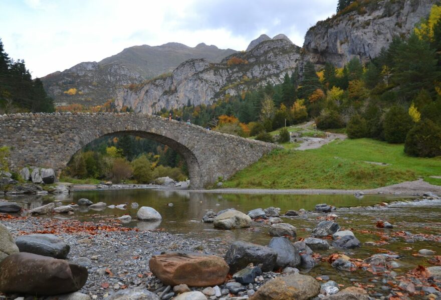 Vodopád v Bosque de Betato, údolí Tena, Pyreneje, Aragonie, Španělsko.
