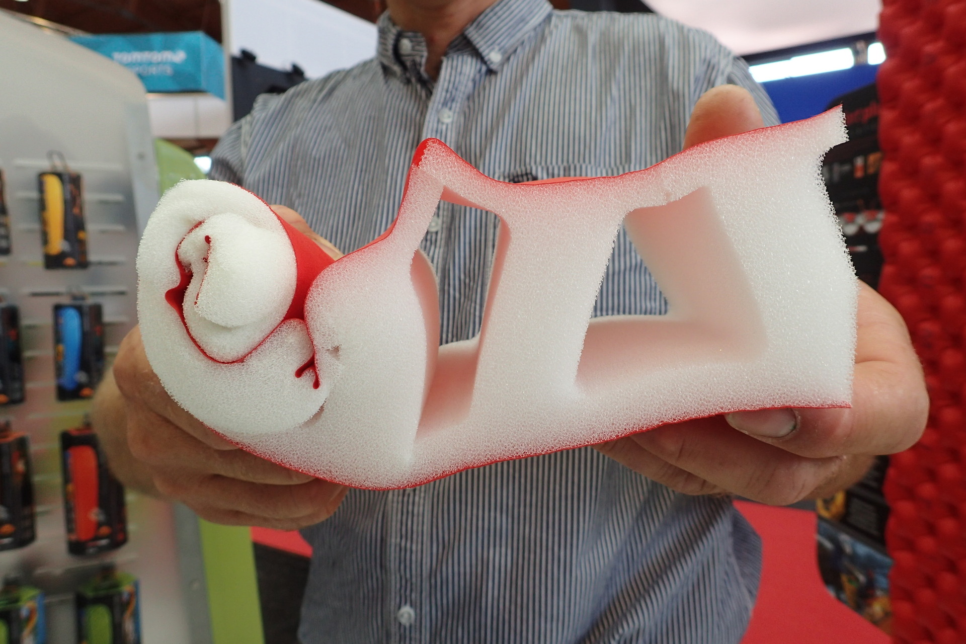 SEATOSUMMIT. Řez karimatkou. Nepravidelný tvar otvorů v profilu karimatky umožňuje její lepší sbalitelnost.
