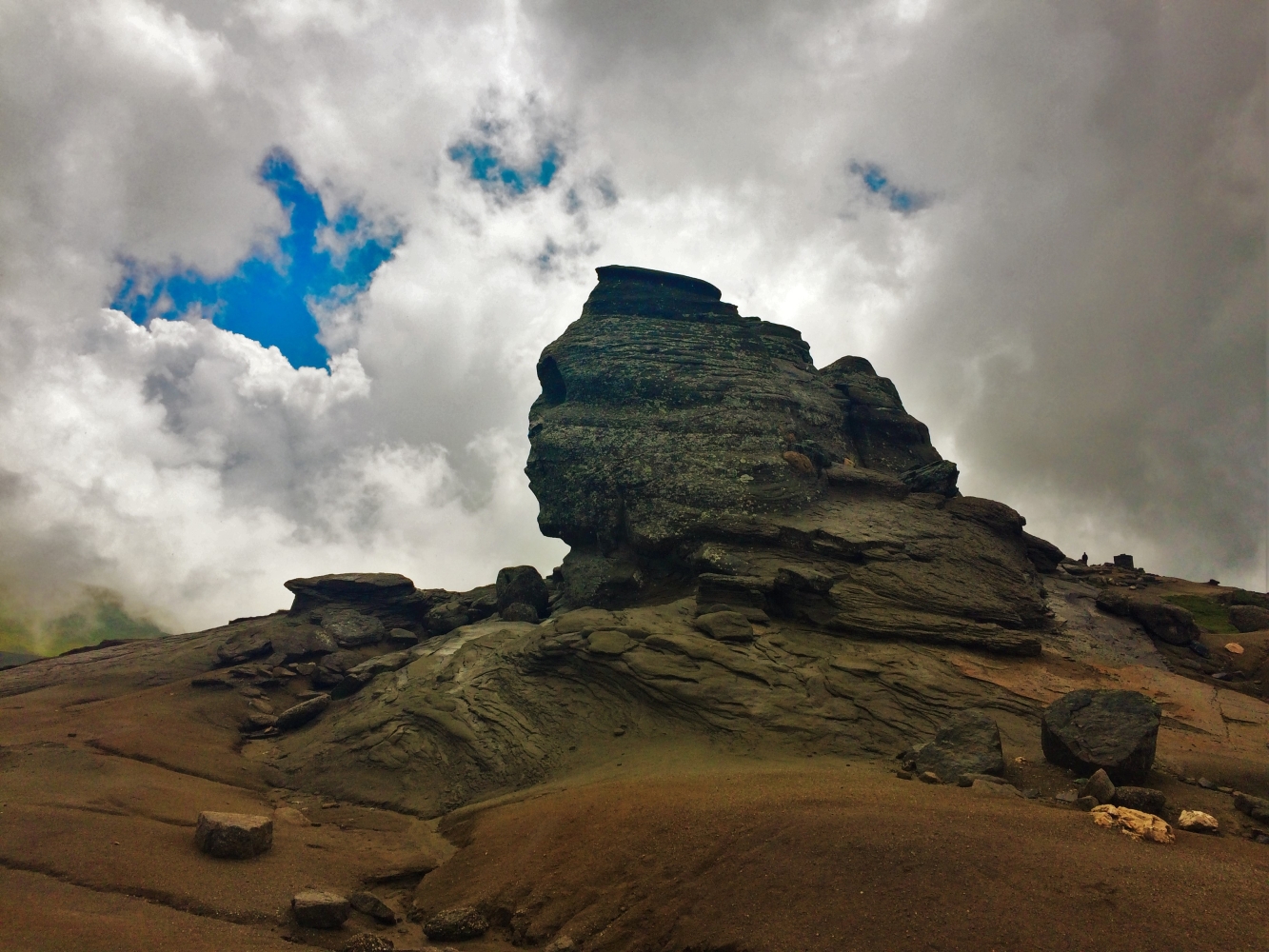 Sfinga v NP Bucegi. Skalní útvary roztodivných tvarů jsou tu typické.
