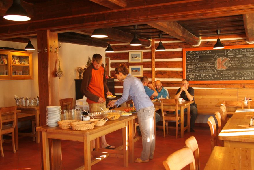 Pastevectví je dodnes partné. Louka nad Klínovým potokem a krkonošské roubenky.