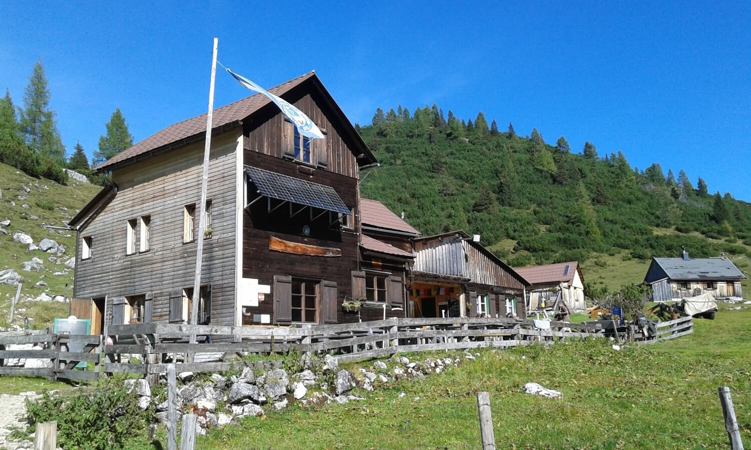 Chata Hochmoelbing Huette, Totes Gebirge, rakouské Alpy.