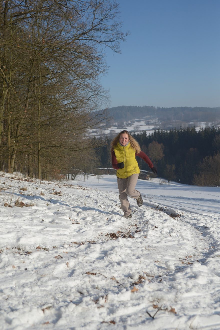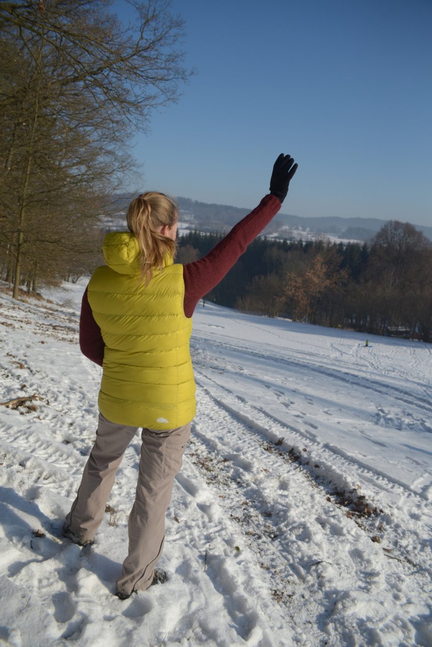 Péřová vesta Warmpeace Yuba v terénu během testování na sněhu.