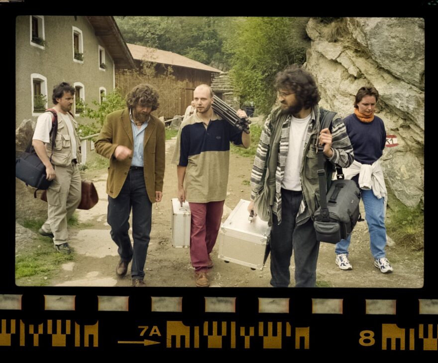 Natáčení seriálu Svět podle Reinholda Messnera. Petr horký a Reinhold Messner v roce 2002 na hradě Juval.