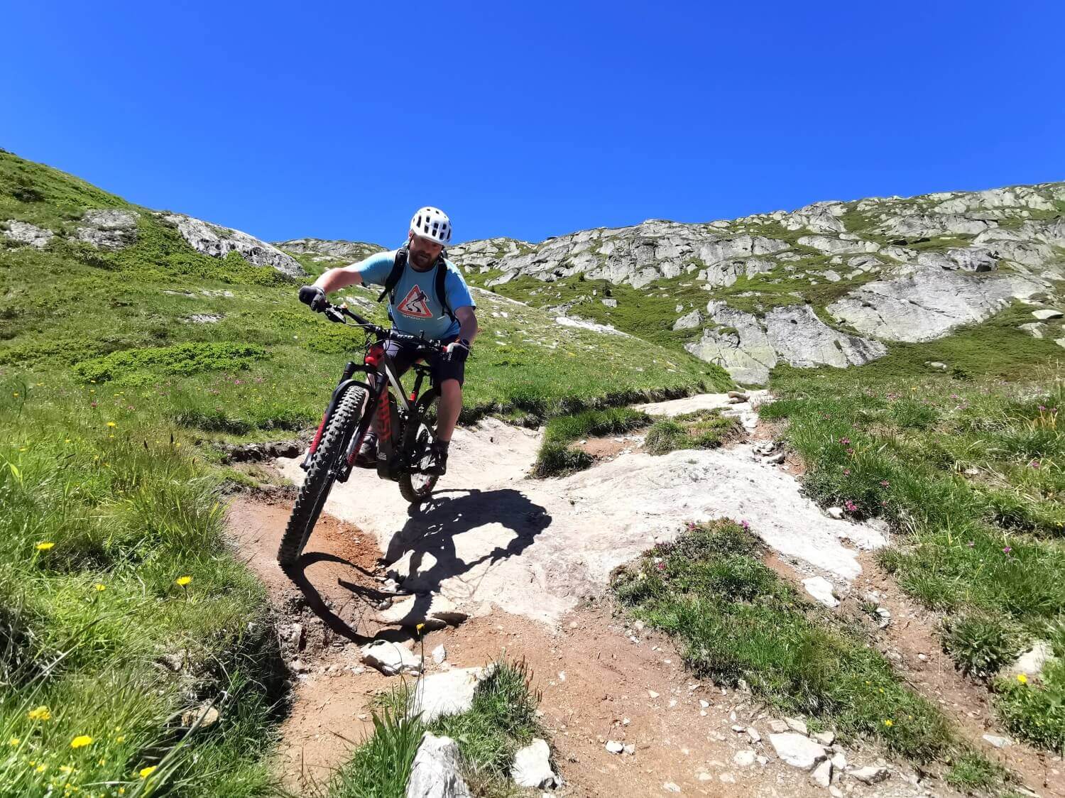 Příroda se mění ze zelených pastvin na skalnaté moře a vy máte pocit, že jedete po trailu na jiné planetě. Aletsch Arena, švýcarské Alpy