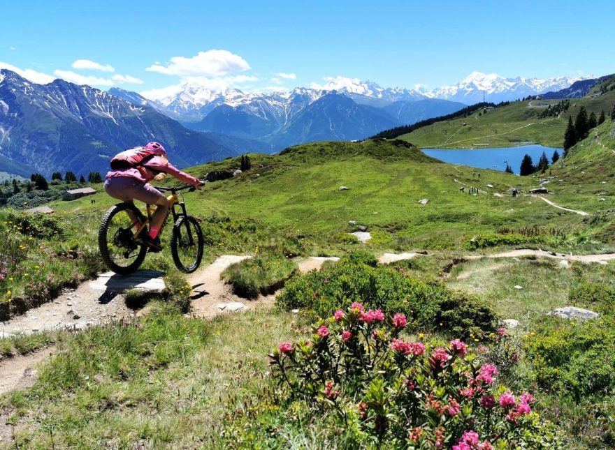 Lanovky vás vyvezou do výšin, odkud se můžete vydat na více než 100 km překrásných horských bike trailů přímo kolem ledovce. Aletsch Arena, švýcarské Alpy