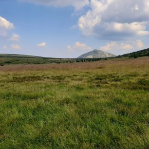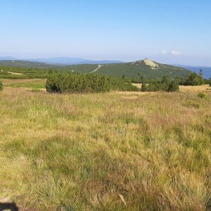 Výhled na Sněžku od kapličky mezi Luční boudou a Výrovkou, Krkonoše