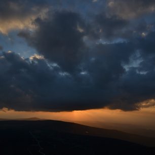 Západ slunce na Sněžce, Krkonoše.