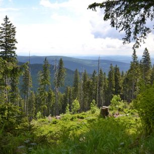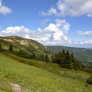 Výhled na Černou horu ze sedla mezi Luční boudou a Výrovkou, Krkonoše