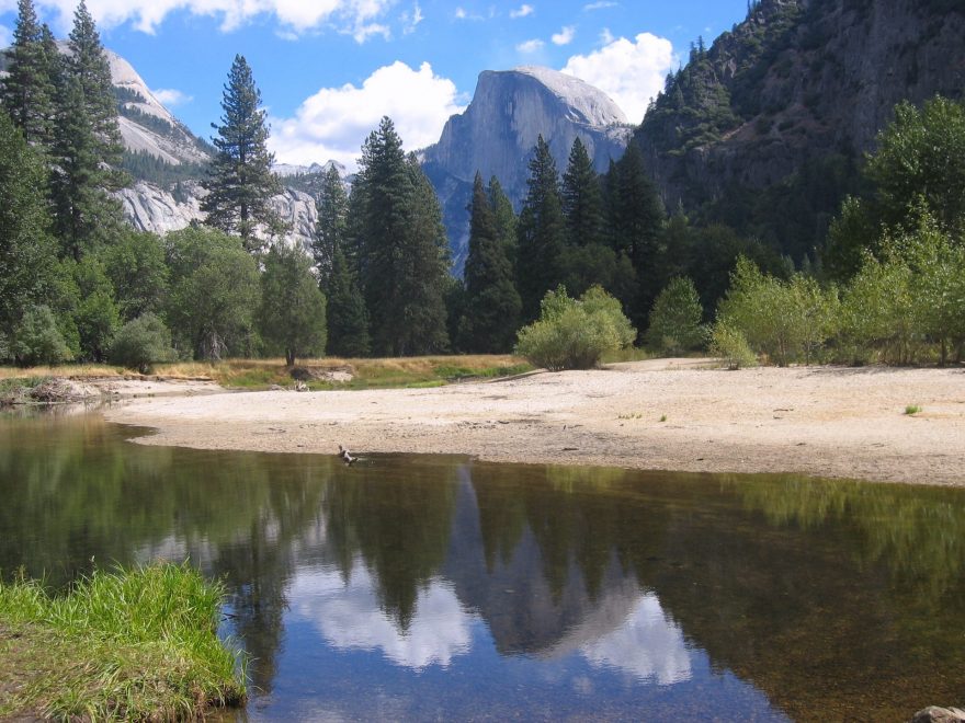 Hlaf Dome se majestátně tyčí nad národním parkem, Yosemity, USA.