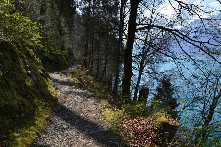 Klikatá stezka lesem, Brienzersee, Švýcarsko.