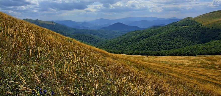Přechod hřebene v polském pohoří Bieszczady