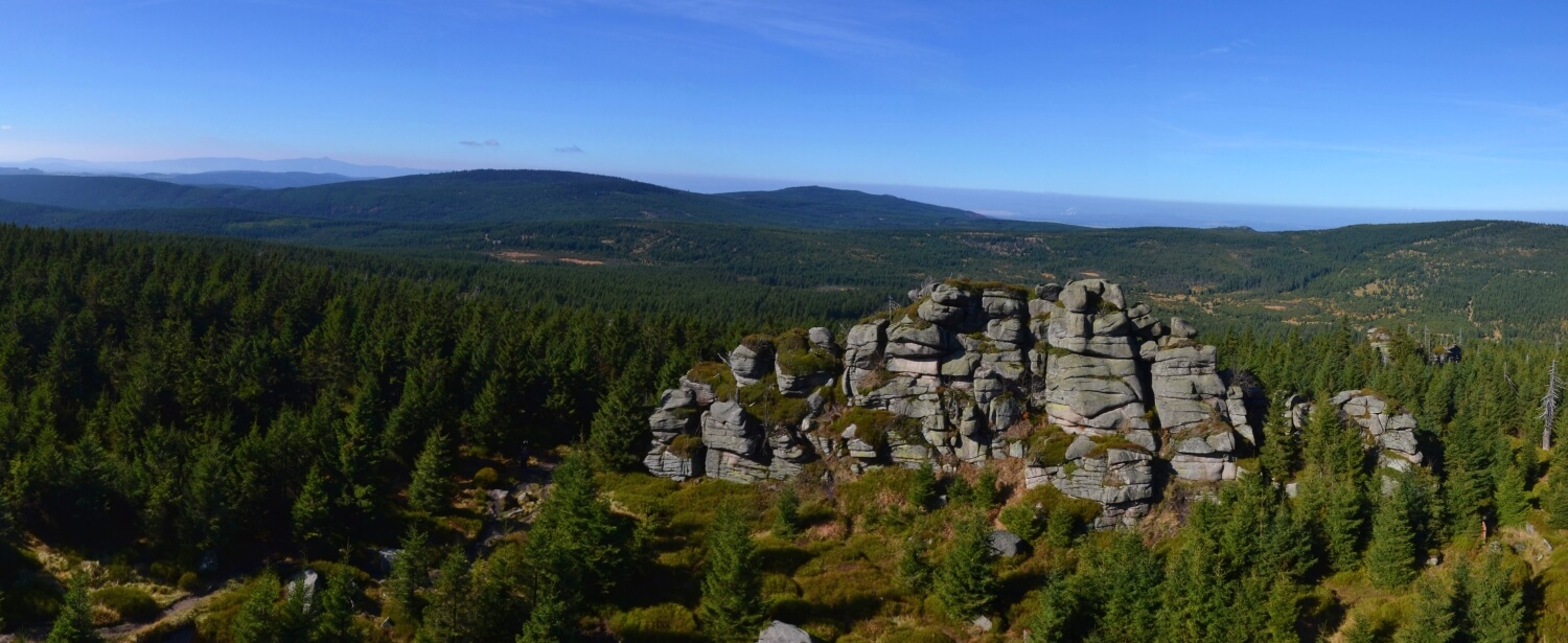 Skalní vyhlídka na vrcholu Jizera, Jizerské hory.