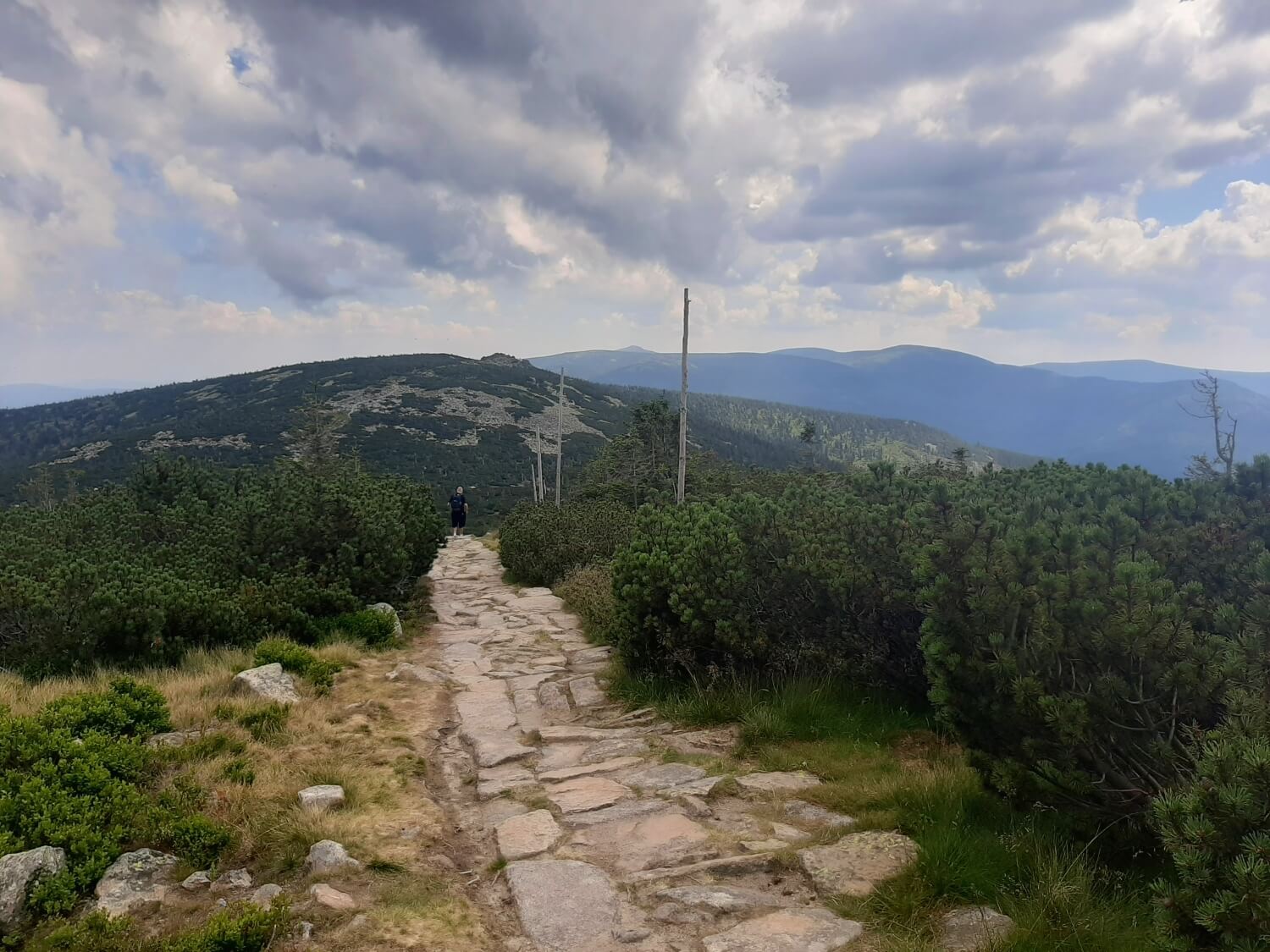 Sestup do sedla Pod Smělcem mezi Vysokým kolem a Mužskými kameny