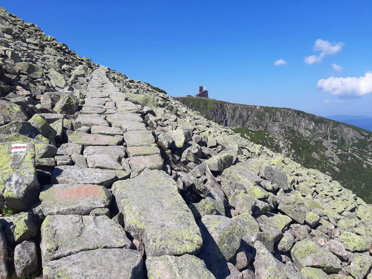 Úbočí Vysokého kola a cesta po kamenných kvádrech, Krkonoše