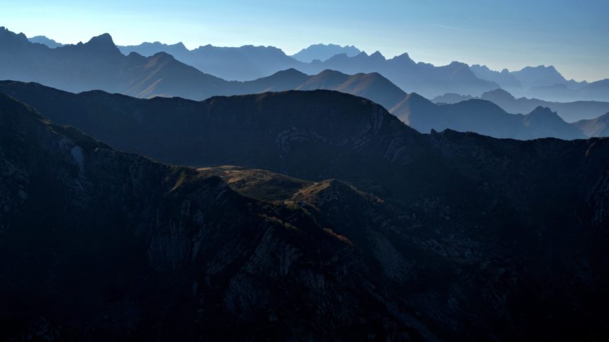 Výhled od pevnosti Pépin na Přímořské Alpy, Ligurské Alpy, Itálie