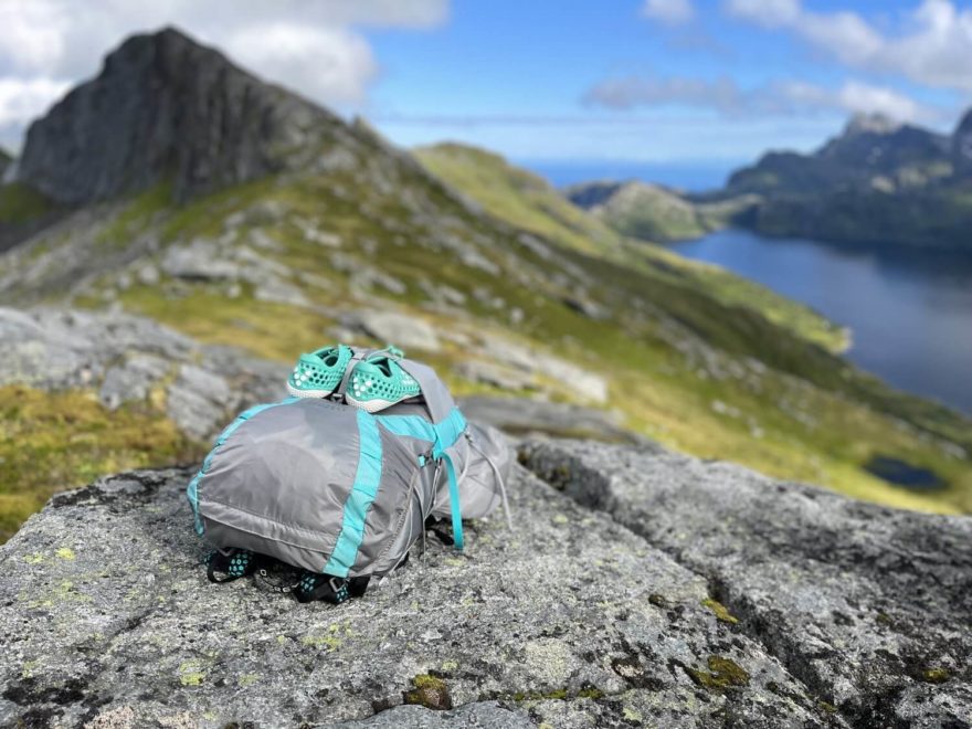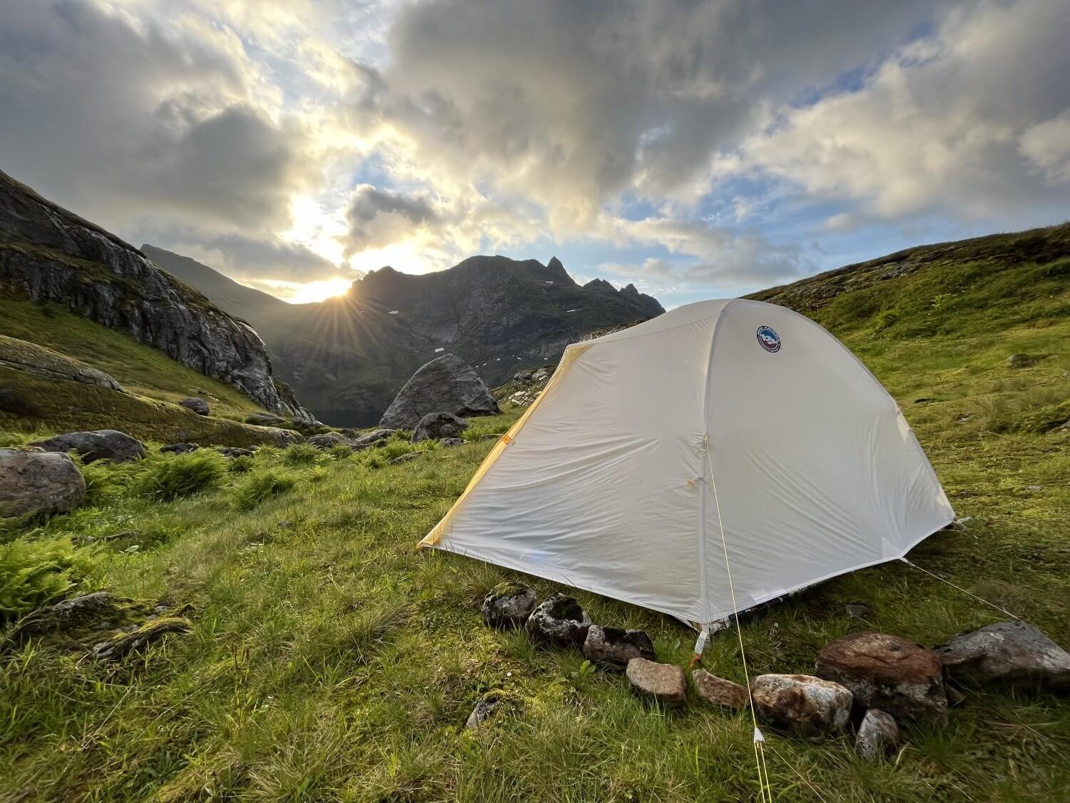 Ráno třetí den uprostřed hor, Lofoty, Norsko.