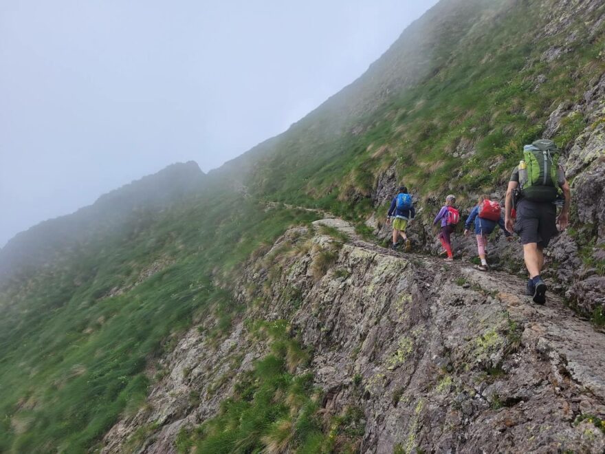 Mírně exponované úseky na treku v Orobijských Alpách, Itálie