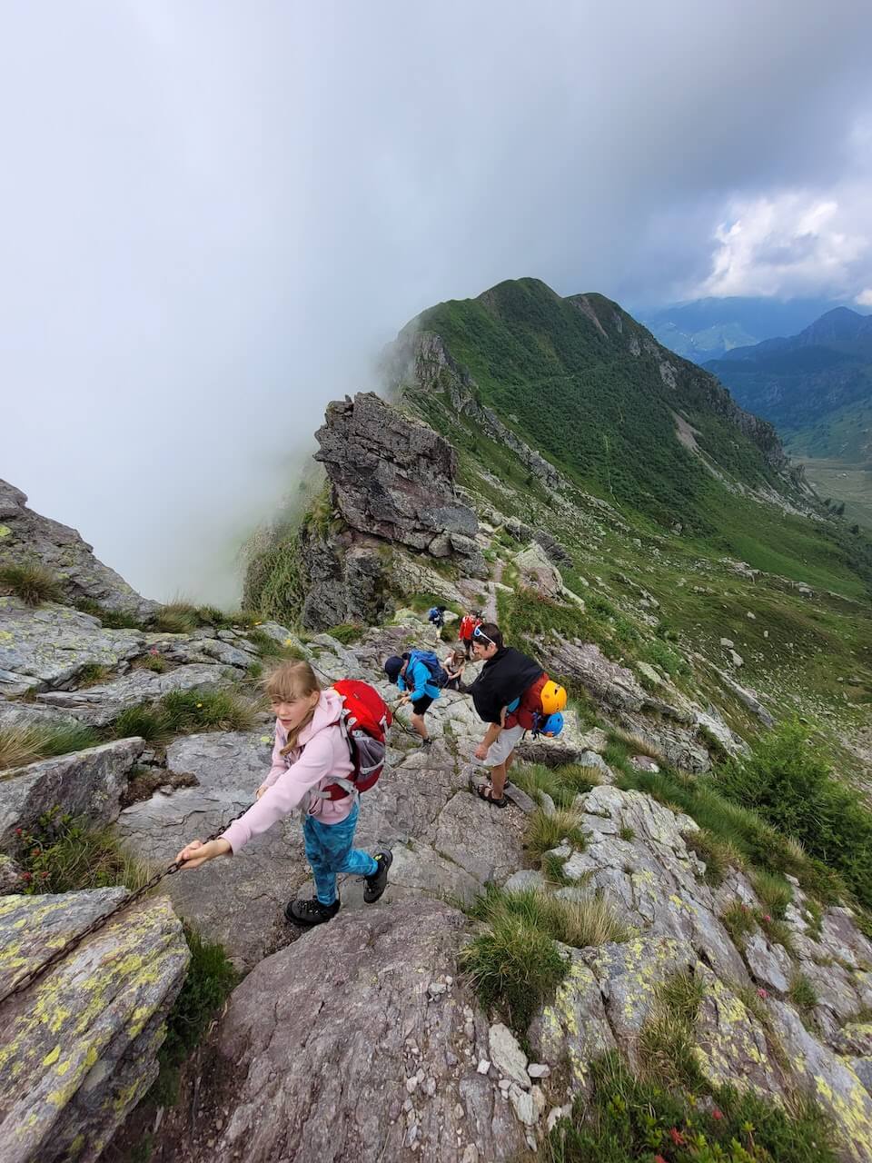 Mírně exponované úseky na treku v Orobijských Alpách, Itálie