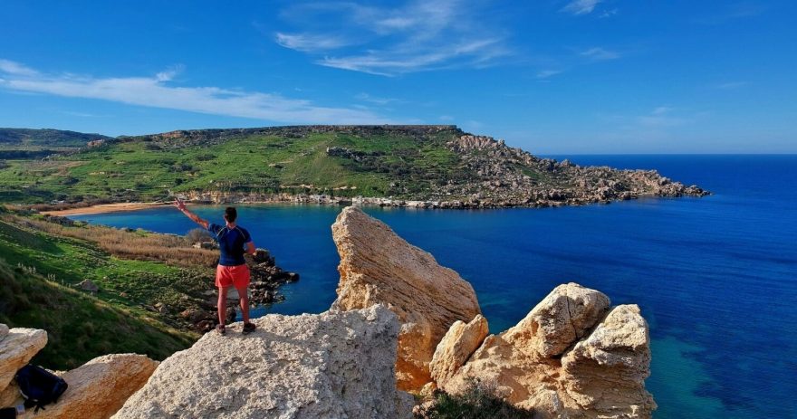 Šťastný po ,,zdolání“ nejvyššího bodu Malty - Ta' Dmejrek ve výšce 253 m.n.m.