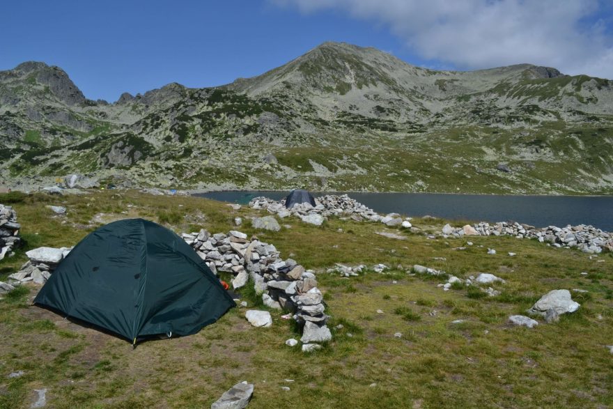 Kemp u jezera Bucura, Retezat, Rumunsko.