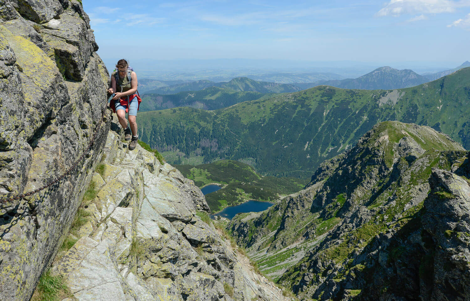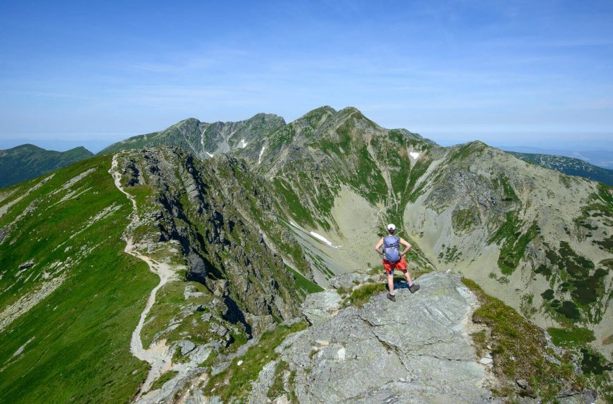 Technicky nejnáročnější částí přechodu Vysokých Tater je přechod skalnatého hřebenu Tri kopy a východního hřebene Baníkova.