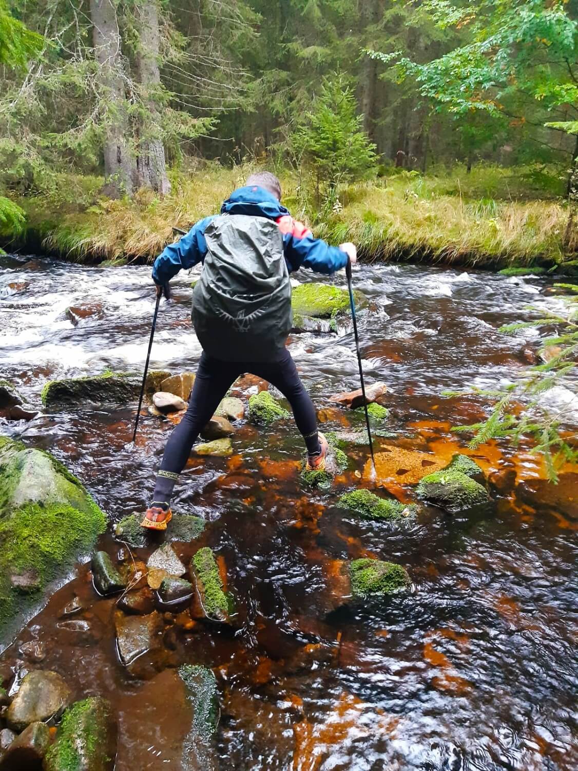 Trekové hole vám poskytnou stabilitu v náročnějším sekcích treku, například při přechodu řeky.
