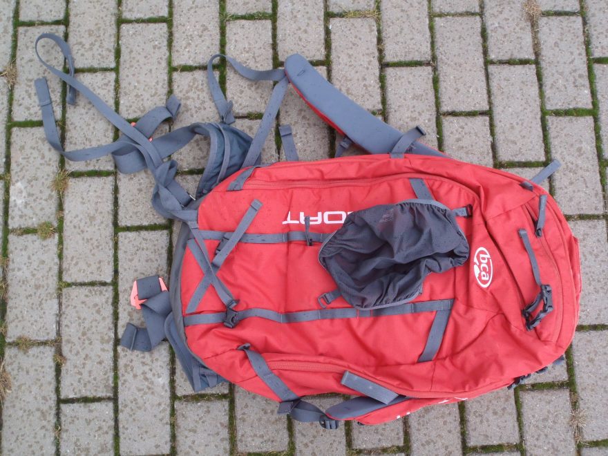 BCA Float 42 Přední extra kapsa na lavinovou výbavou je velká a kromě sondy a lopaty pojme ještě další vybavení.