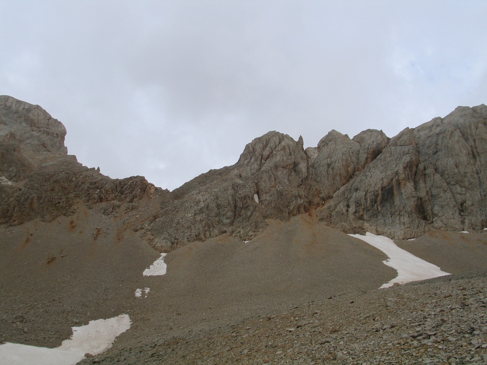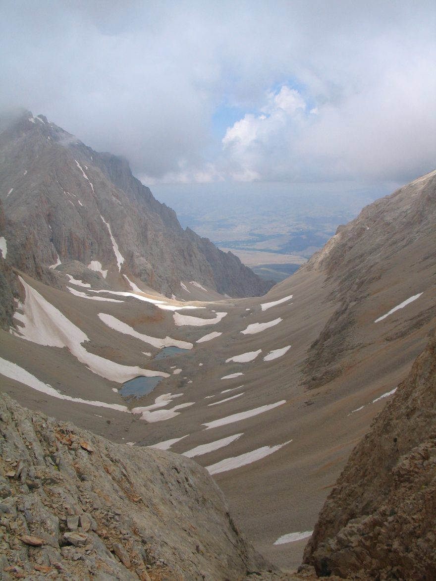 Diagonála vpravo = sestupová cesta do údolí Narpuz, Ala daglari, Turecko