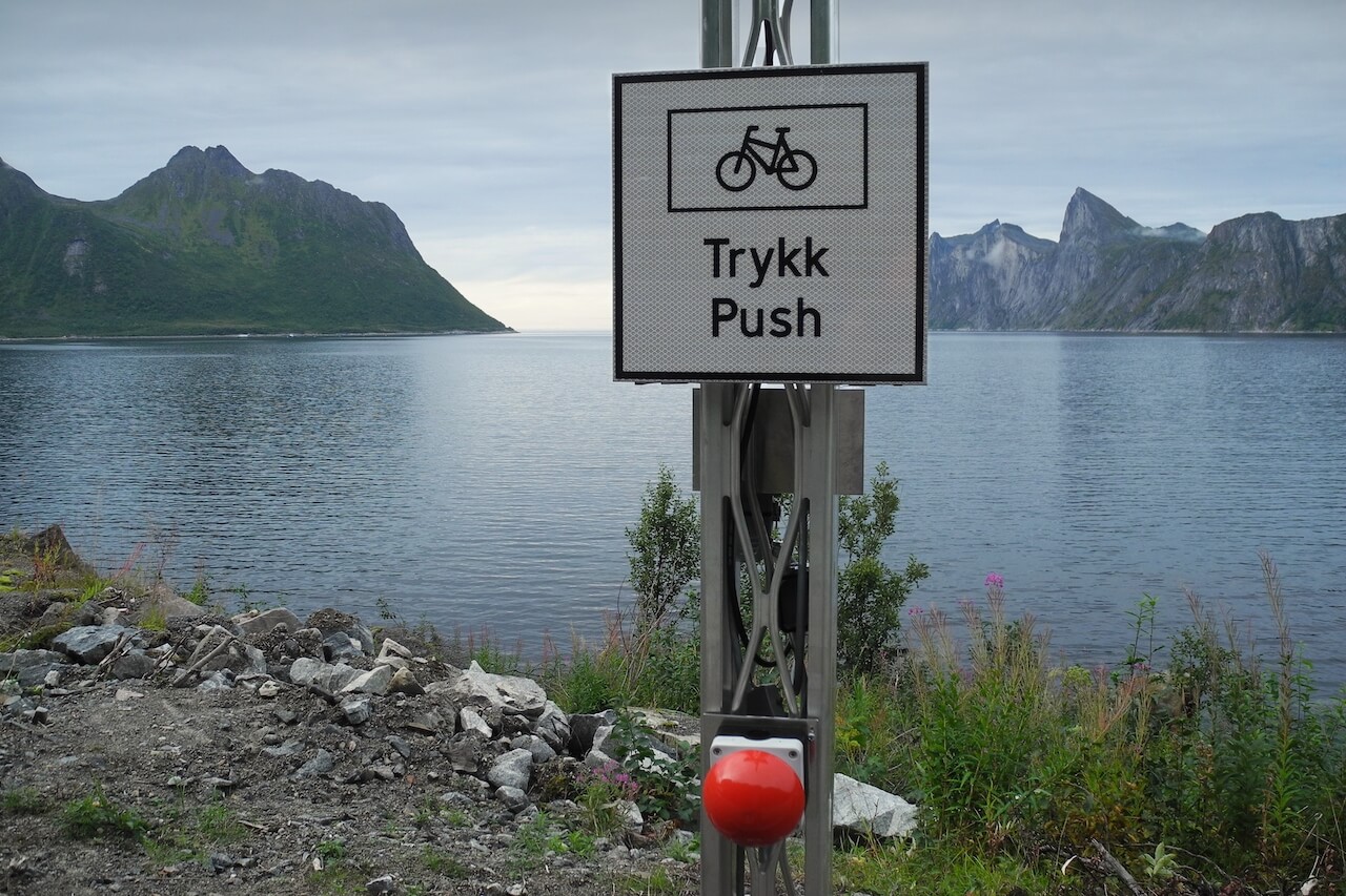 Značka pro cyklisty u vjezdu do tunelu v Norsku