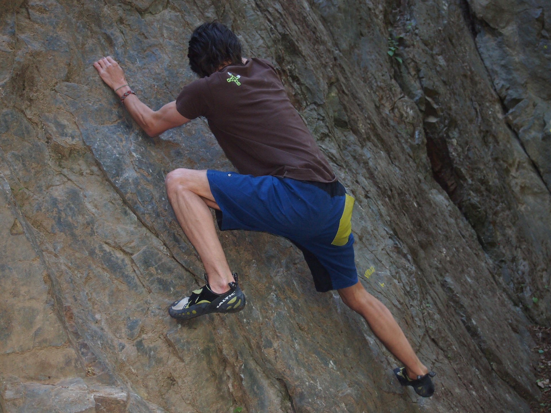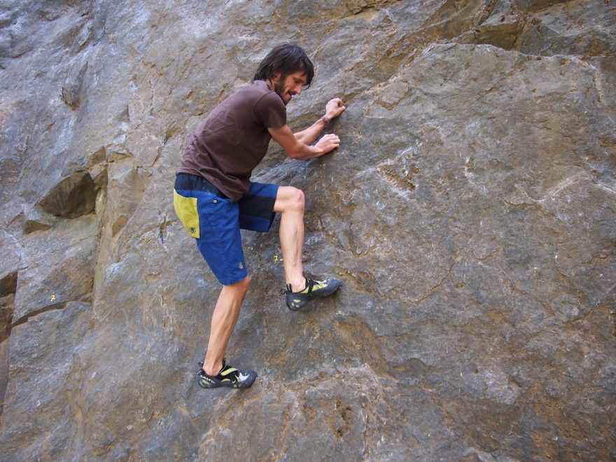 Kraťasy neomezují a lezec se může soustředit jen na pohyb.