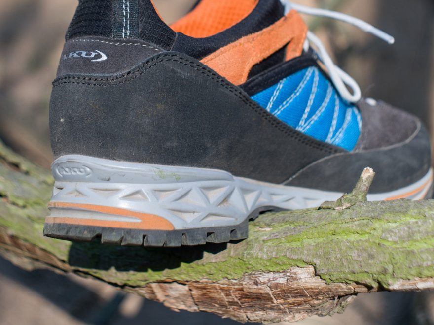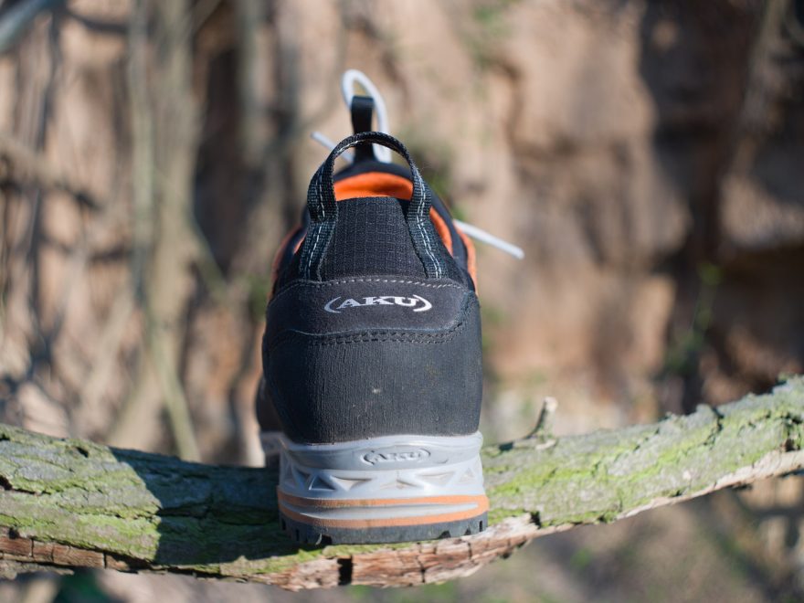 Detail na gumovou obsázku, odpružení paty a velké oko, které použijete při transportu i při nazouvání