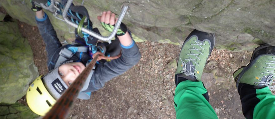 Bota Asolo Apex GV je měkčí a je nutné nohu při stání na malých stupech zpevnit.