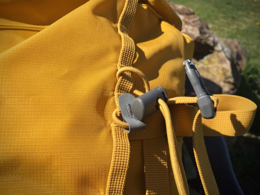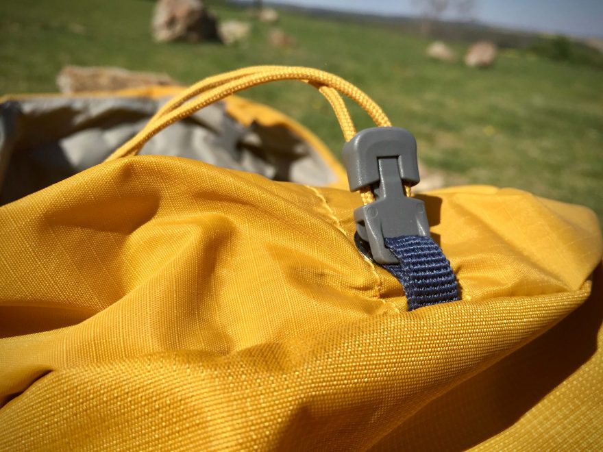 Detail upnutí lana na botoh Deuter Guide 34+